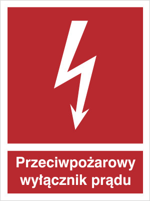 Znak przeciwpożarowy wyłącznik prądu na Folii Samoprzylepnej (219)